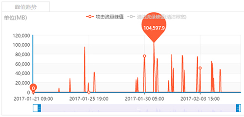 | 70Gb <DDoS峰值 ≤80Gb | 230,000QPS <攻擊峰值 ≤260,000QPS | 10500 |